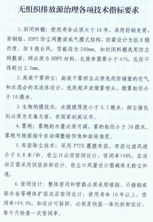 驗收標準:改造后,鋼鐵企業主要無組織排放源周邊1米處,顆粒物濃度小于5mg/m3;經收集處理后的顆粒物有組織排放濃度小于10mg/m3 。