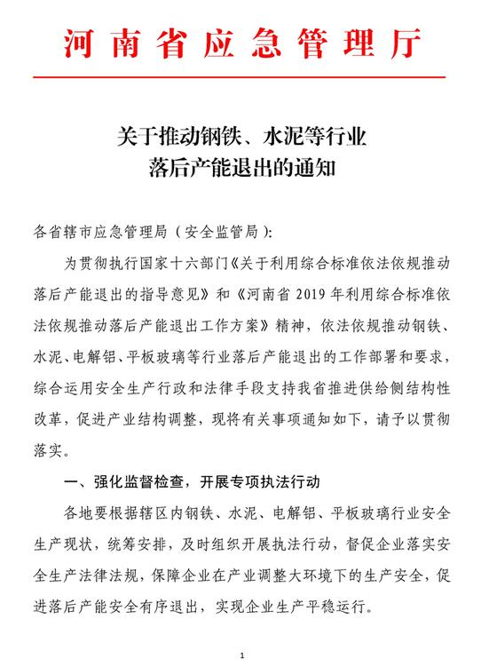 日前,河南印發《關于推動鋼鐵、水泥等行業落后產能退出的通知》。全文如下: