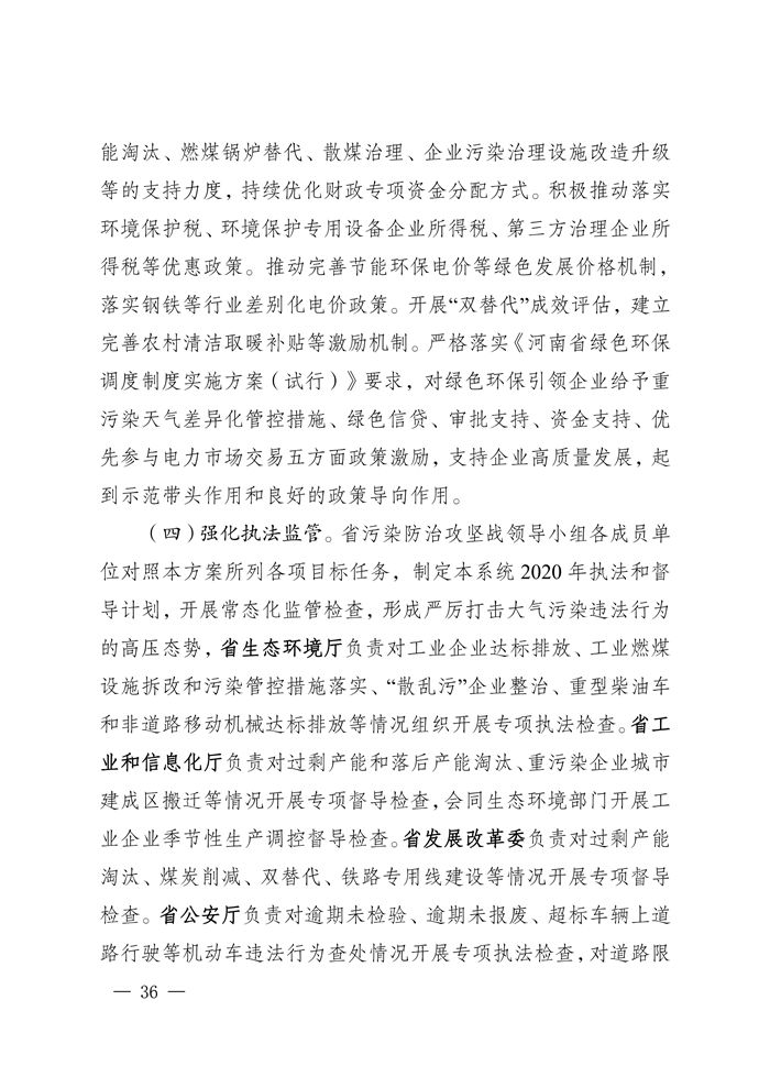 近日,河南省污染防治攻堅戰領導小組辦公室印發《河南省2020年大氣污染防治攻堅戰實施方案》(以下簡稱《方案》)。方案提出: