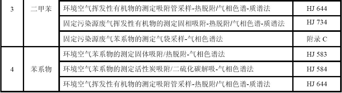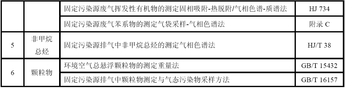 GB 16297 大氣污染物綜合排放標準 GB 24409 汽車涂料中有害物質限量 GB/T 15089 機動車輛及掛車分類 GB/T15432 環(huán)境空氣總懸浮顆粒物的測定重量法 GB/T 16157 固定污染源排氣中顆粒物測定與氣態(tài)污染物采樣方法 HJ 583  環(huán)境空氣苯系物的測定固體吸附/熱脫附-氣相色譜法 HJ 584   環(huán)境空氣苯系物的測定活性炭吸附/二硫化碳解吸-氣相色譜法 HJ 644      環(huán)境空氣揮發(fā)性有機物的測定吸附管采樣-熱脫附/氣相色譜-質譜法 HJ 732  固定污染源廢氣揮發(fā)性有機物的采樣氣袋法 HJ 734  固定污染源廢氣揮發(fā)性有機物的測定固相吸附-熱脫附/氣相色譜-質譜法 HJ/T 38  固定污染源排氣中非甲烷總烴的測定氣相色譜法 HJ/T 55  大氣污染物無組織排放監(jiān)測技術導則 HJ/T 75   固定污染源煙氣排放連續(xù)監(jiān)測技術規(guī)范(試行) HJ/T 194  環(huán)境空氣質量手工監(jiān)測技術規(guī)范 HJ/T 293  清潔生產標準汽車制造業(yè)(涂裝) HJ/T 397  固定源廢氣監(jiān)測技術規(guī)范 《建設項目環(huán)境保護設施竣工驗收監(jiān)測技術要求(試行)》(環(huán)發(fā)(2000)38號)