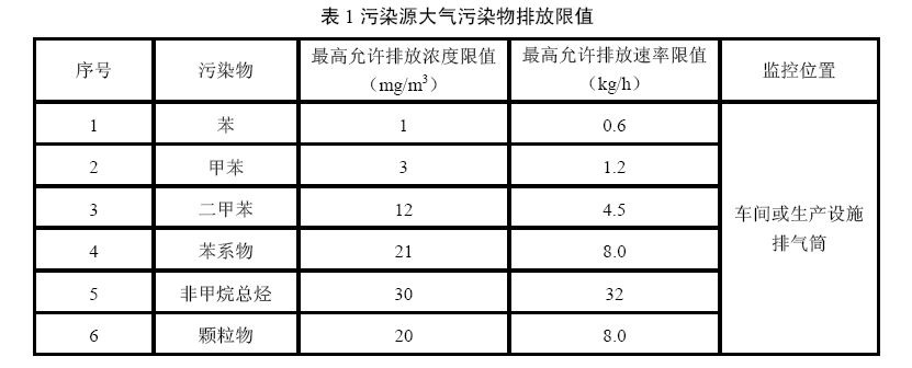 污染源大氣污染物排放濃度和排放速率限值應符合表1規(guī)定。