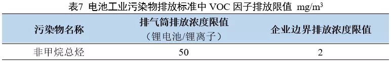 電池工業(yè)VOC污染物排放標(biāo)準(zhǔn)見下表。