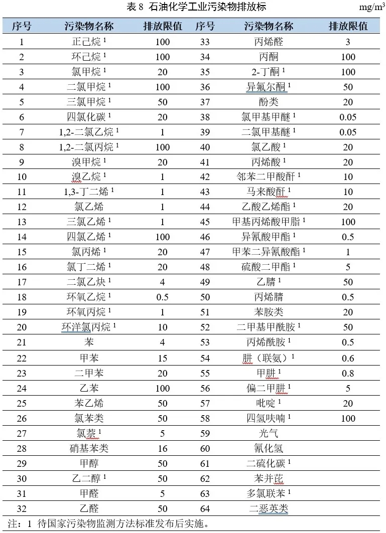 以石油餾分、天然氣等為原料,生產(chǎn)有機(jī)化學(xué)品、合成樹脂、合成纖維、合成橡膠等的工業(yè),執(zhí)行本標(biāo)準(zhǔn)。本標(biāo)準(zhǔn)是當(dāng)前國(guó)家排放標(biāo)準(zhǔn)中涉VOC特征因子最多的排放標(biāo)準(zhǔn)。但大多數(shù)因子國(guó)家還未發(fā)布相關(guān)檢測(cè)方法。