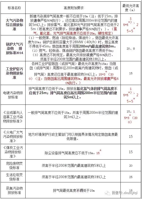 二、各大氣排放標(biāo)準(zhǔn)對排氣筒高度的規(guī)定