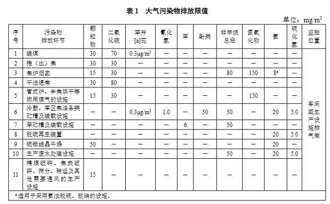 1 新建企業自2022 年7 月1 日起,現有企業自2023 年7 月1 日起,執行表1 規定的大氣污染物排放限值。