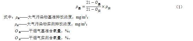 5 進入VOCs 燃燒(焚燒、氧化)裝置的廢氣需要補充空氣進行燃燒、氧化反應的,排氣筒中實測大氣污染物排放濃度,應按式(1)換算為基準含氧量為3%的大氣污染物基準排放濃度。利用鍋爐、焦爐及其他工業爐窯、固體廢物焚燒爐焚燒處理有機廢氣的,煙氣基準含氧量按其排放標準規定執行。