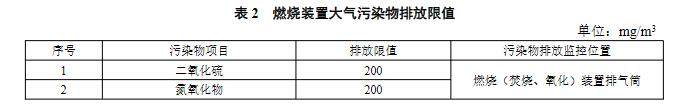 4 VOCs 燃燒(焚燒、氧化)裝置除滿足表1 的大氣污染物排放要求外,還需對排放煙氣中的二氧化硫、氮氧化物進行控制,達到表2 規定的限值;利用鍋爐、工業爐窯(除焦爐外)、固體廢物焚燒爐焚燒處理有機廢氣的,還應滿足相應排放標準的控制要求。利用焦爐焚燒處理有機廢氣的,應滿足表1中焦爐煙囪的控制要求。