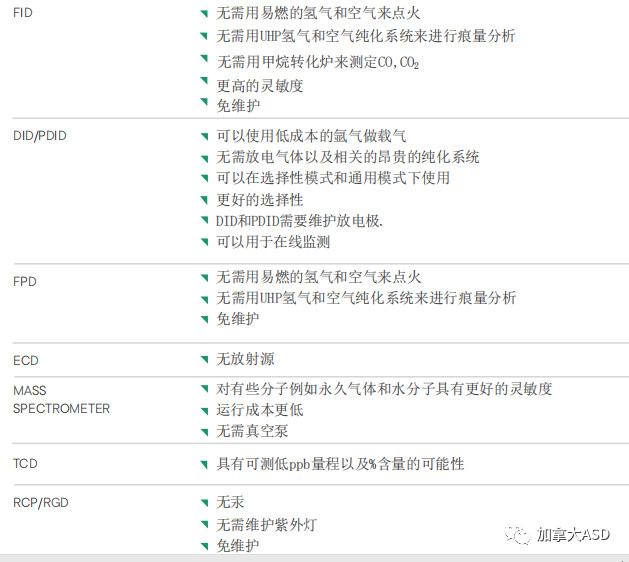 增強(qiáng)等離子體放電技術(shù)可以代替許多形式的檢測器,詳見下表
